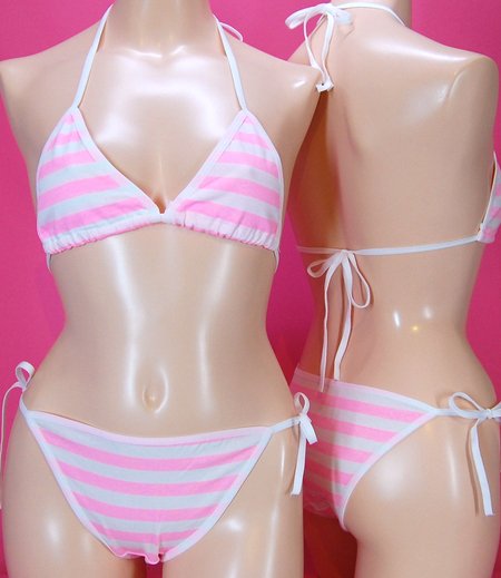 ボーダー三角ブラと横ヒモショーツのセット