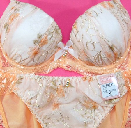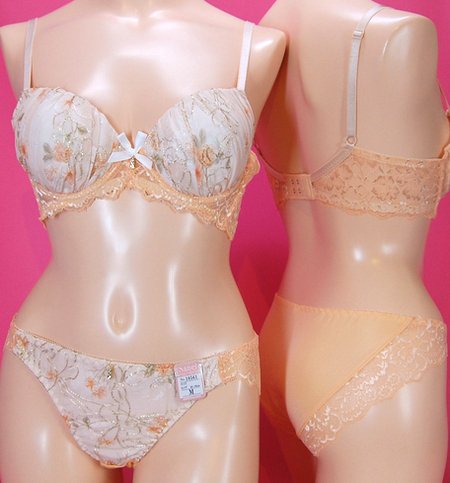 ラメ糸刺繍バックレースブラとショーツのセット
