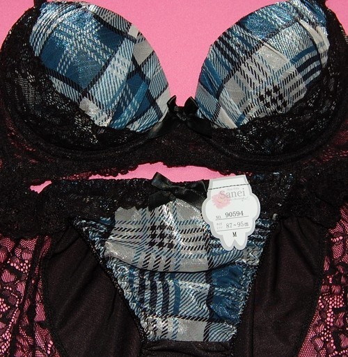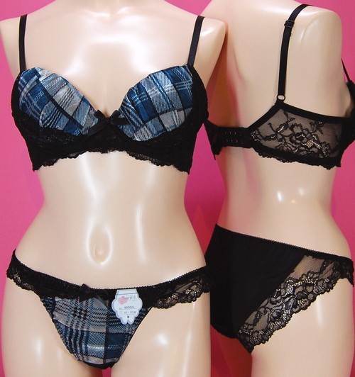 ノンワイヤーサテンタータンチェックブラとショーツのセット