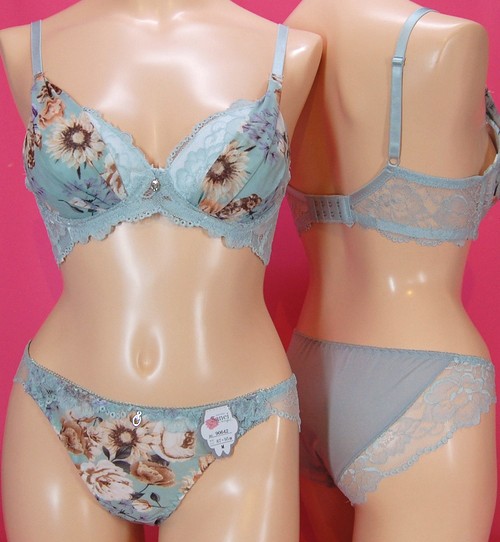 ノンワイヤーフラワーシフォンブラとショーツのセット