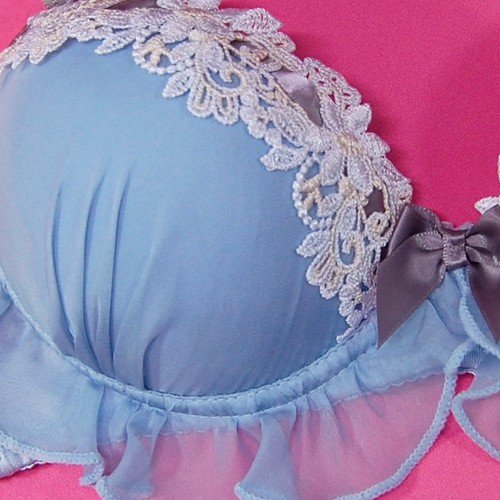 ノンワイヤーケミカルリボン通しシフォンブラとショーツのセット