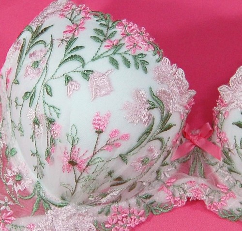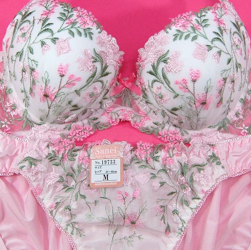 パステルフラワー刺繍ブラとショーツのセット